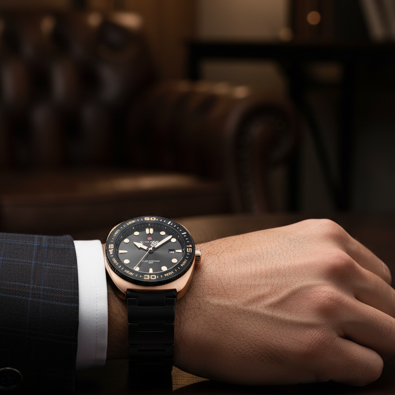 El Naviforce Asteron es un reloj casual para hombre que combina estilo moderno con un toque sofisticado. Su diseño metálico en acabado negro con detalles sutiles y un bisel elegante lo convierten en un accesorio perfecto para el día a día, reuniones o salidas nocturnas.