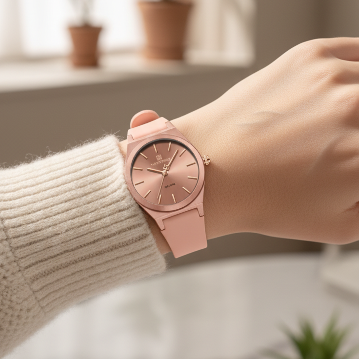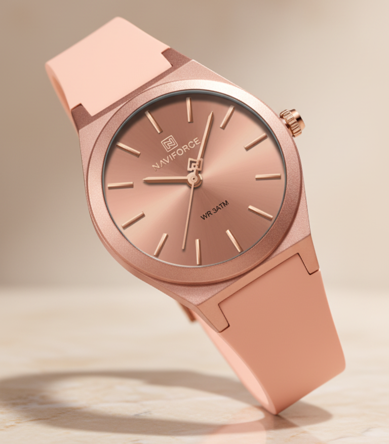 Reloj minimalista Naviforce Luna Minimal para mujer con correa de silicona y caja metálica en acabado mate, ideal para quienes buscan estilo moderno y ligero. Esfera monocromática sin números, diseño elegante tipo “clean look”, resistente al agua 3ATM y con movimiento japonés de alta precisión. Perfecto para uso diario, outfits casuales o estilo aesthetic.
