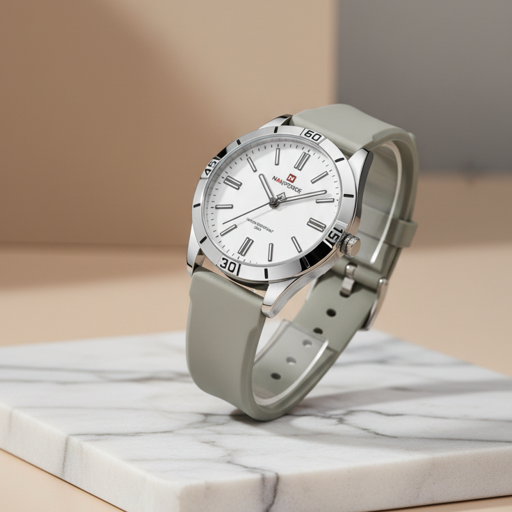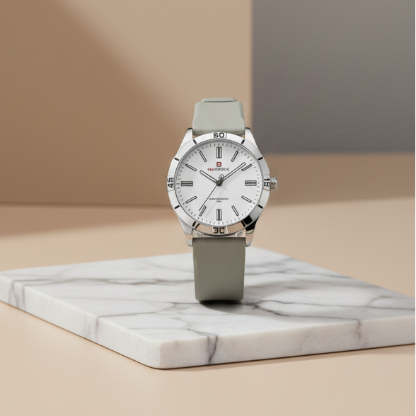 Naviforce Soft Edge es un reloj casual pensado para mujeres que prefieren un diseño limpio, moderno y sin complicaciones. Su combinación de correa suave y caja metálica pulida crea un equilibrio perfecto entre confort diario y elegancia minimalista.